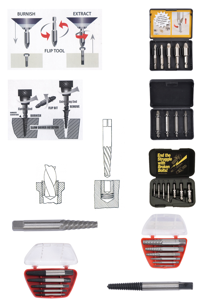 可重復使用的損壞螺絲拆卸器旨在快速去除頭部剝落的損壞螺釘和容易。三種尺寸適用于從#6到#14的螺絲。香克斯是1/4"六角頭,適用于大多數電動和繩鉆與鉆頭、六角鉆頭起子或六角鉆頭支架一起使用。不需要鉆孔,只需向下推并轉動即可。它會移除所有具有凹進驅動裝置的螺釘。這包括十字緊固件、開槽緊固件、六角緊固件、梅花緊固件、最抗篡改螺絲等等。去除器具有特殊的硬化鋼頭帶反向切削鉆頭。一旦插入普通鉆頭他們在旋轉時切入并抓住螺釘頭反向鉆。